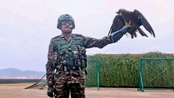 臂托上的猛禽负责空中侦察任务,凭借鹰隼远超人类的敏锐视力,它们能在边境区域协助监测各类异常动向。