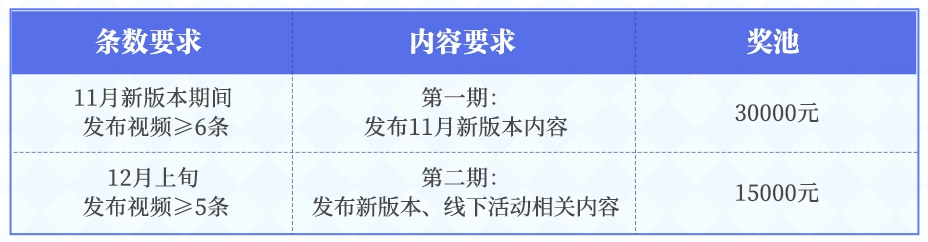 如小A在抖音发布的6条视频为11月新版本相关内容且携带正确话题,则可以参与瓜分第一周期奖池。