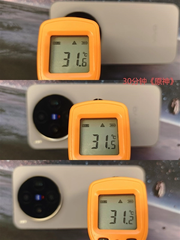 即便是高负载的30分钟《原神》,全机身温度也稳定在31.2℃-31.6℃,整体温差控制在6℃以内,长时间握持无明显烫手感。