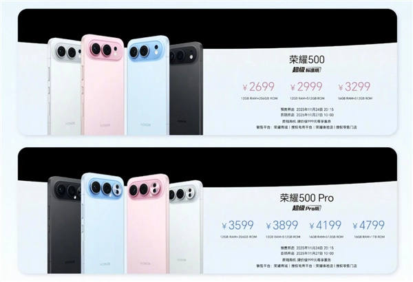 左:荣耀 500标准版;右:荣耀 500 Pro 版