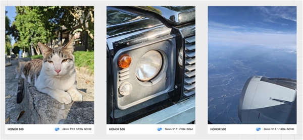 荣耀 500 标准版依旧是主摄+超广角的经典组合,而 Pro 版则通过一颗直立长焦跟标准版拉开了差距 —— 换句话说,想玩长焦?得加钱!但你要说它们的影像拉了,那倒未必。