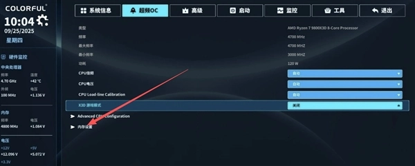 内存设置中的高效能模式就是七彩虹主板的一键内存优化功能。