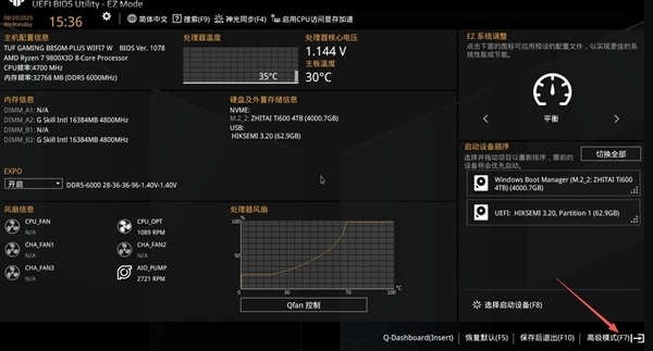 华硕主板如何开启?