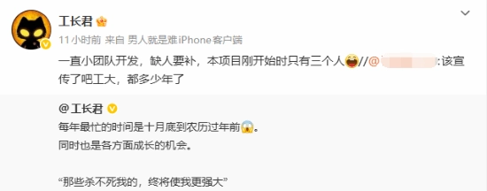 有网友期待能早点进行宣传,毕竟距离项目启动已经过去好些年了。工长君对此回应道:“我们一直是小团队在推进开发工作,人员方面存在缺口需要补充,这个项目刚开始的时候团队里只有三个人。”