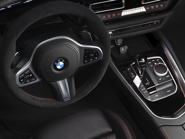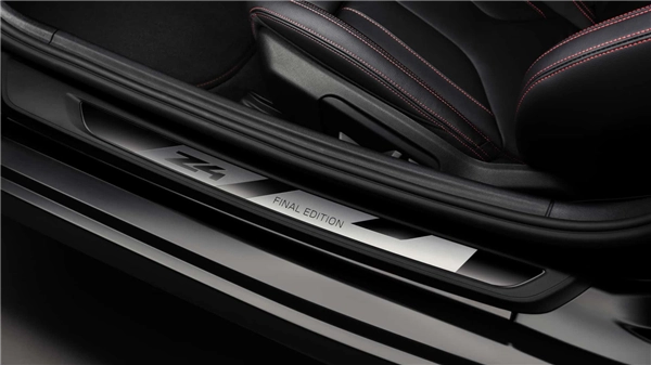 车内的仪表台、中控台、门板、脚踏垫以及M Sport座椅均以红色缝线贯穿,座椅采用Vernasca皮革与Alcantara材质包覆,同时通过专属门槛饰板来凸显Final Edition的独特身份。