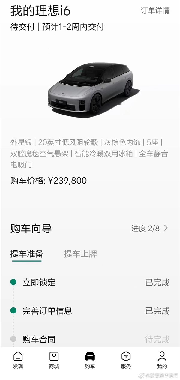 近日有博主爆料,理想i6除了宁德时代电池外,还可选择欣旺达电池,两者规格容量相同;选择欣旺达电池版本的大定用户,提车周期将从原本的3-5周大幅缩短至1-2周。