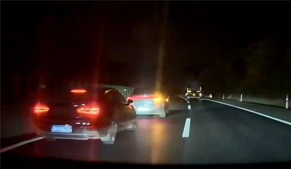 从行车记录仪的画面中可以看到,这件事发生在本月24日晚上19点41分,当时视频车正行驶在一段同向双车道的高速公路上,前方有两辆车。