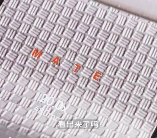 放大二十倍后便会看到,那些密密麻麻的纹路之中,居然藏着“MATE”这四个字母。