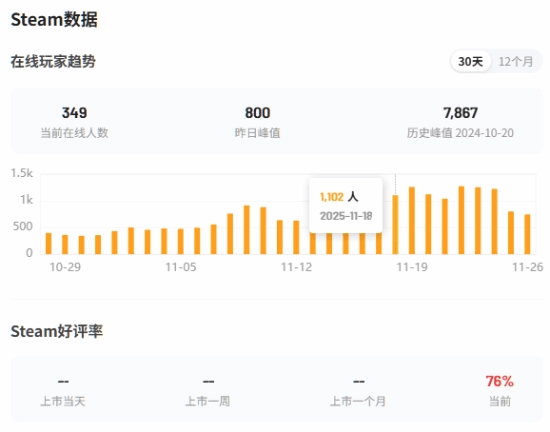 免费DLC正式推出后,《刺客信条:幻景》在Steam平台的热度出现小幅回升,其每日在线人数峰值从先前的五百人左右增长至四位数,然而这一数字与该作历史峰值的7867人相比,依旧存在较大差距。