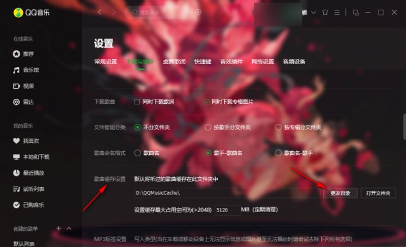 找到【歌曲缓存设置】后,点击【更改目录】按钮。