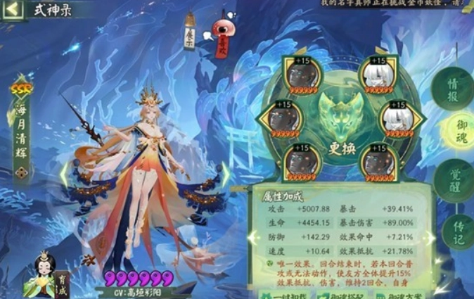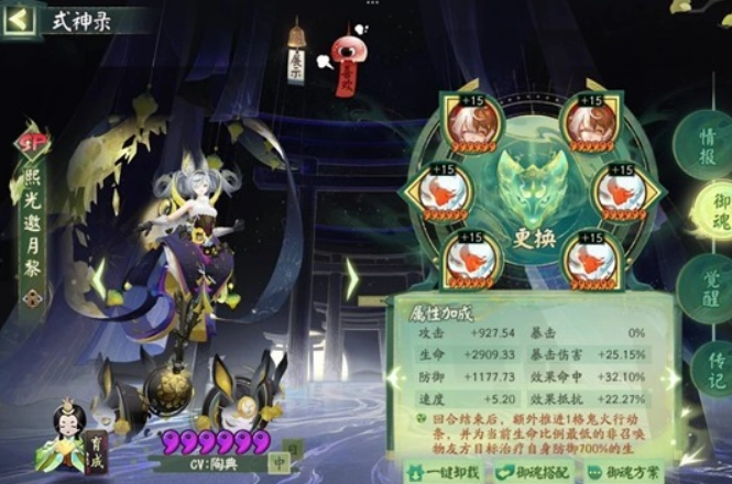 缘结神(若对面已有三个茧,可让大蛇第二次拉缘结神,这样我方第四个单位会变成茧):携带蚌精御魂,属性选择生命、生命、暴击