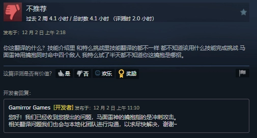 另外,游戏的中文翻译在一些细节上似乎存在问题,不过开发者已经回应会尽快处理这些问题。