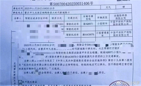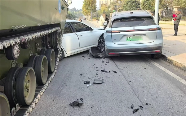 12月3日消息,近日在重庆九龙坡区的一个十字路口,一辆正常直行的试制装甲车意外撞上了一辆违规掉头的大众轿车,事故还波及到了停在路边的一辆蔚来SUV。