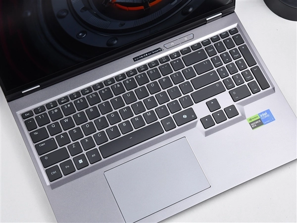 机械革命耀世16 Ultra的键盘手感颇为出色,方向键采用了全高设计。机身右上角配备了独立的电源键与性能模式快速切换键,同时还设有独立数字键区。这款笔记本的触控板和腕托面积都相当大,其中触控板并未为了让腕托保持对称而置于腕托中间,而是从操控体验的角度出发,设计在了空格键的正下方。