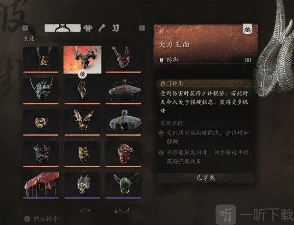 在装备方面,主力阴阳法衣能提供高额减免(不过需将血量维持在50%以上才能触发,后续会有方法教程)。由于走的是抵抗路线,在臂甲和腿甲的选择上,推荐穿戴2件玄铁装备。头部则选用牛魔王头,受到攻击时可回复棍势。
