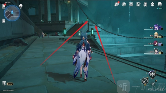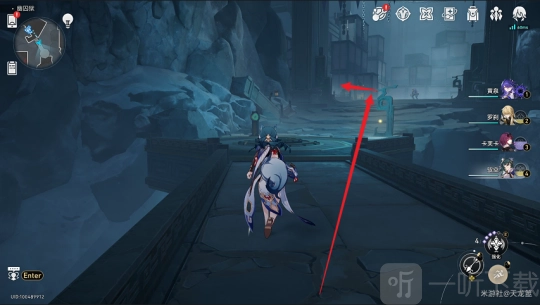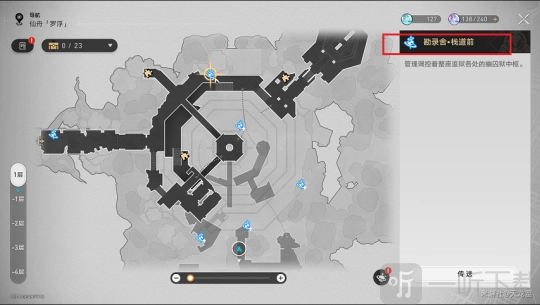 完成对话后,打开地图,前往上方「勘录舍·栈道前」的锚点。