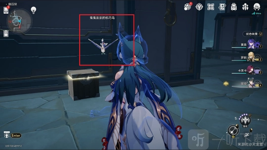 进入之后,与箱子旁边那只「鬼鬼祟祟的机巧鸟」交谈。